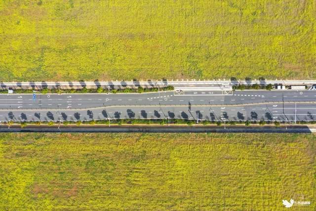 临空港新城的油菜花田与罗港市民农园相依相偎,宛如一幅浑然天成的田园画卷。