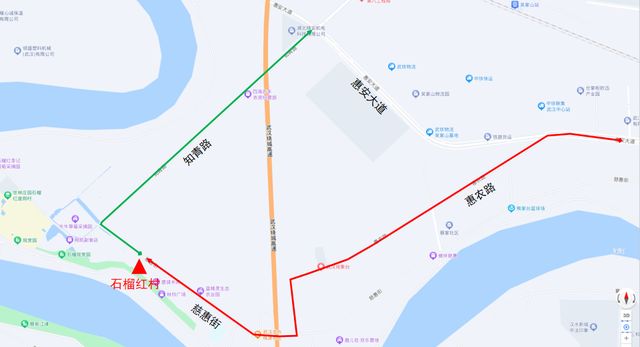 2.汉江堤单向通行,仅允许车辆驶离,禁止车辆由汉江堤驶入石榴红村。