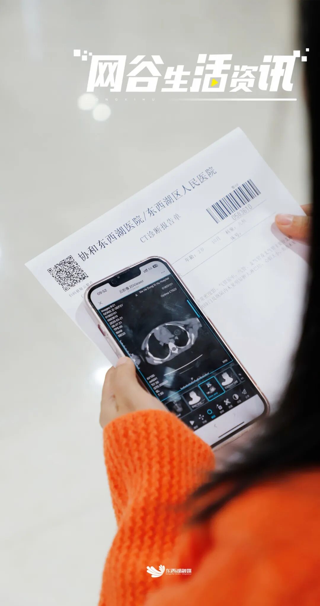 在协和东西湖医院放射科,记者看到,患者完成检查后,无需留在现场等待打印胶片,只需用微信扫描诊断报告单上的二维码,即可在手机上查看上百幅原始高清影像,并可随时缩放、旋转、标注或测量图像细节。若需跨院会诊,患者仅需分享二维码,医生即可同步调阅完整影像资料,远程协作效率大幅提升。