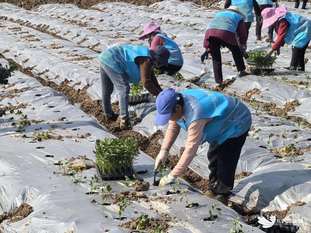 走进大棚内,嫩绿的辣椒苗舒展新叶,10余名工人正进行精准滴灌作业。在露天种植基地,80余名工人身着统一工装,以阵列式横向排开,一手握紧穴盘里培育的辣椒苗,一手以45度角斜插破开垄间土层。