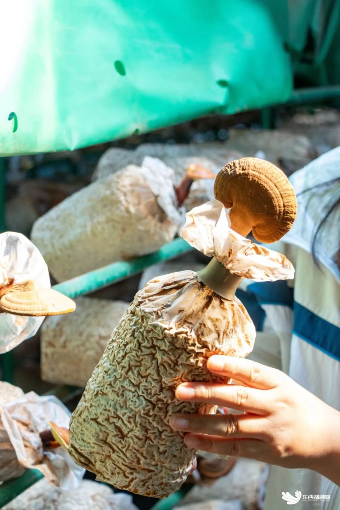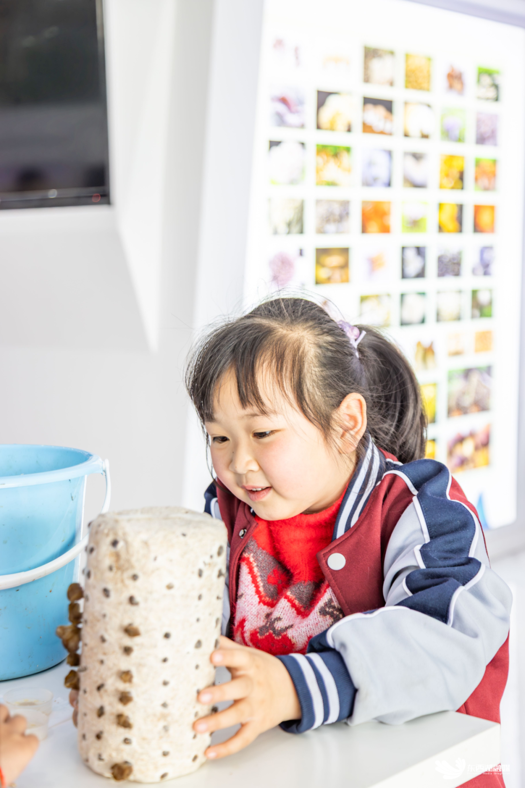 在食用菌基地,菌菇也有“育儿室”,学生们认识灵芝、玉木耳等特色菌类的“个性”,并亲手参与菌包制作。
