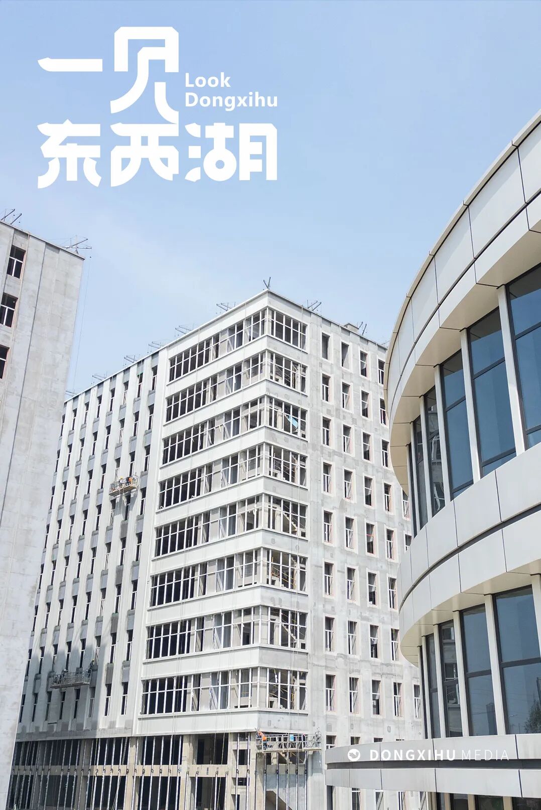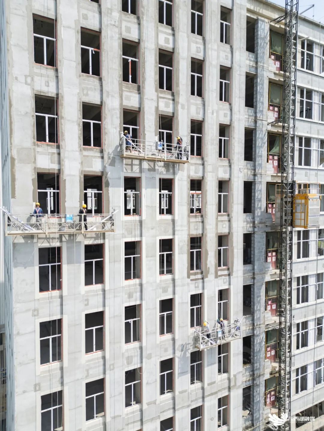 工人们正在进行外立面施工。