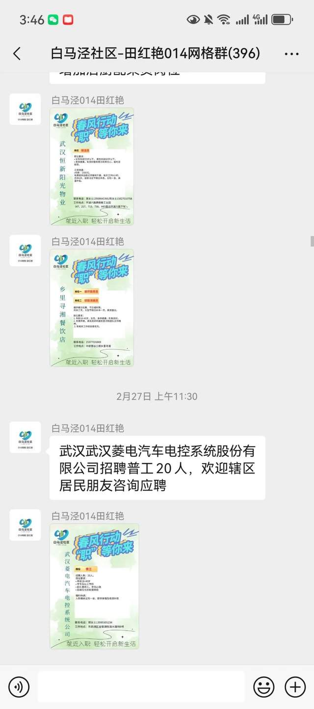 社区在居民群为企业宣传招聘。