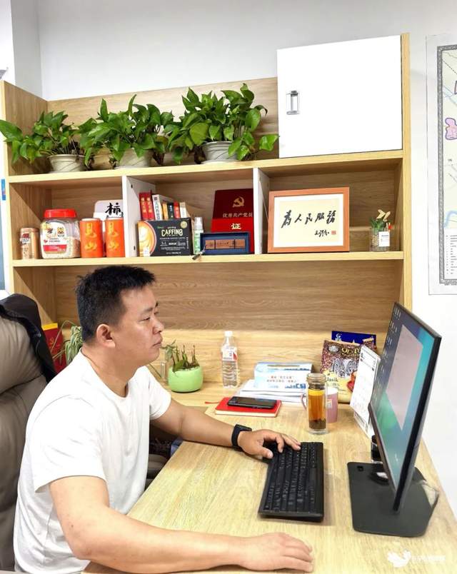 社区书记陈诚正在工作中。