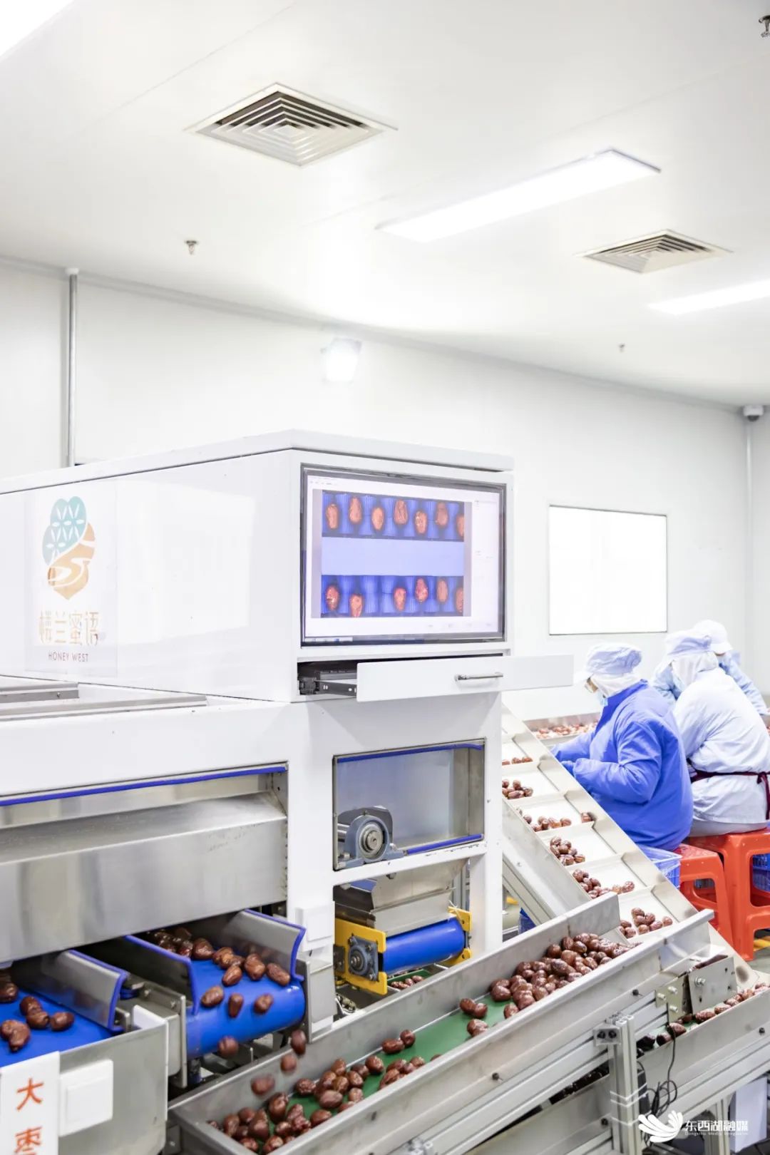 楼兰蜜语副总经理许继才介绍,红枣精选设备采用最先进的AI全景扫描,可全方位检测瑕疵并智能分选。骏枣按品质标准划分为二等果、一等果和特级果,通过AI智选,可精准把控骏枣的饱满度与圆润度,确保品质一致。