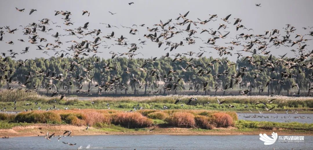 天鹅湖上候鸟蹁跹。(东西湖融媒图片资料库)