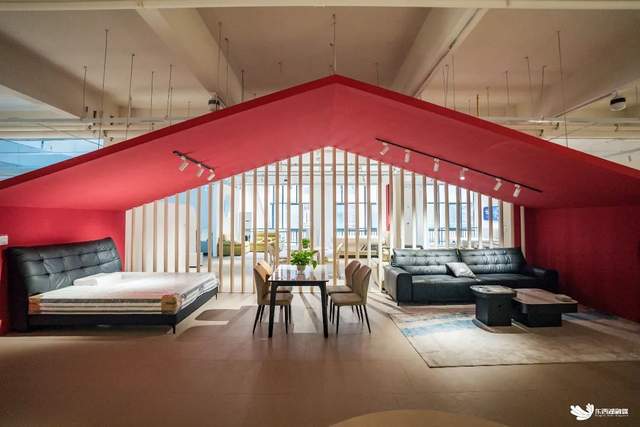落地盛世鑫茂工业园,张玉琴很是庆幸。这里冠以工业园之名,实际上已形成聚合餐饮、娱乐休闲等复合型商圈,有着成熟的自然客流。厂房结构可实现开阔展示空间,完美适配家居工厂店“大件陈列+仓储直销”模式。