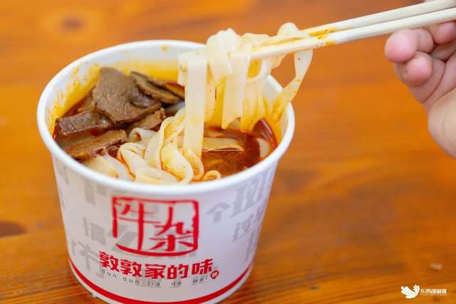5:00-14:00提供牛肉牛杂粉、面。如果你喜欢重口重油的牛肉粉,一定要来试一下。敦敦家的汤都是每天早上新鲜熬制的。牛杂味道很不错,牛筋软烂入味,有着独特的“果冻口感”。再来一个2块钱的面窝——面窝炸制时用特制铜勺控制厚度,成就内圈酥脆、外心绵软的完美结构。