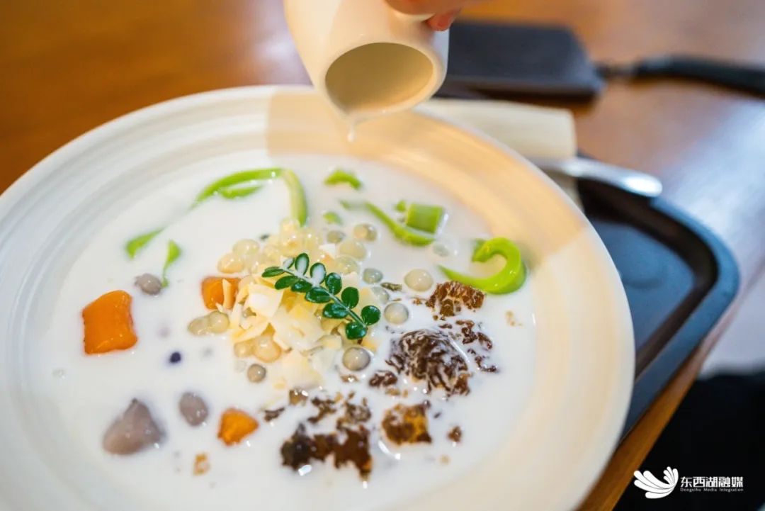 推开店门,木质基调的原色桌椅,搭配藤编吊灯,阳光透过落地窗在桌面投下斑驳树影,瞬间让人放松下来。开放式厨房里,糖水锅咕嘟作响,玻璃罐中桃胶如琥珀、莲子似白玉,食材的原始美感成为最好的装饰,像极了小时候趴在厨房门口,看父母准备饭菜的温馨场景。徐芳笑着说:“希望客人感觉,这是安心吃糖水的‘家’。”