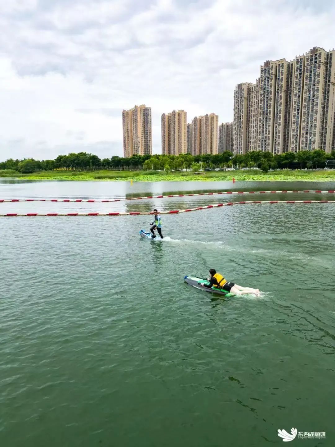 黄塘湖公园推出电动冲浪板、水上卡丁车,可体验速度与激情,让少年们乘风破浪。