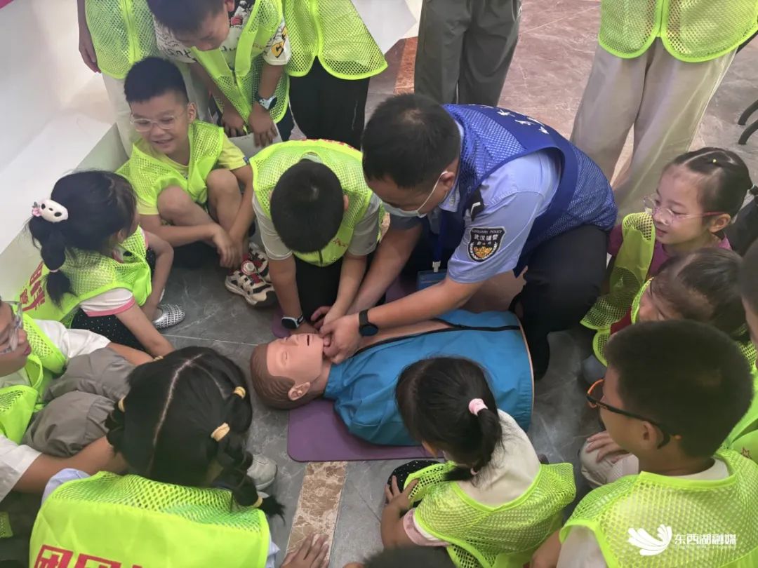 急救课程上,孩子们模拟演练了心肺复苏和伤口包扎;交通课程中,他们学习交通规则、理解交通标志的含义;反诈和禁毒课程则帮助他们提高自我保护意识。东西湖分局相关工作人员告诉记者:“在这里,孩子们不仅能学到实用的安全知识和技能,还能在潜移默化中感受人民警察的工作使命和责任担当。”