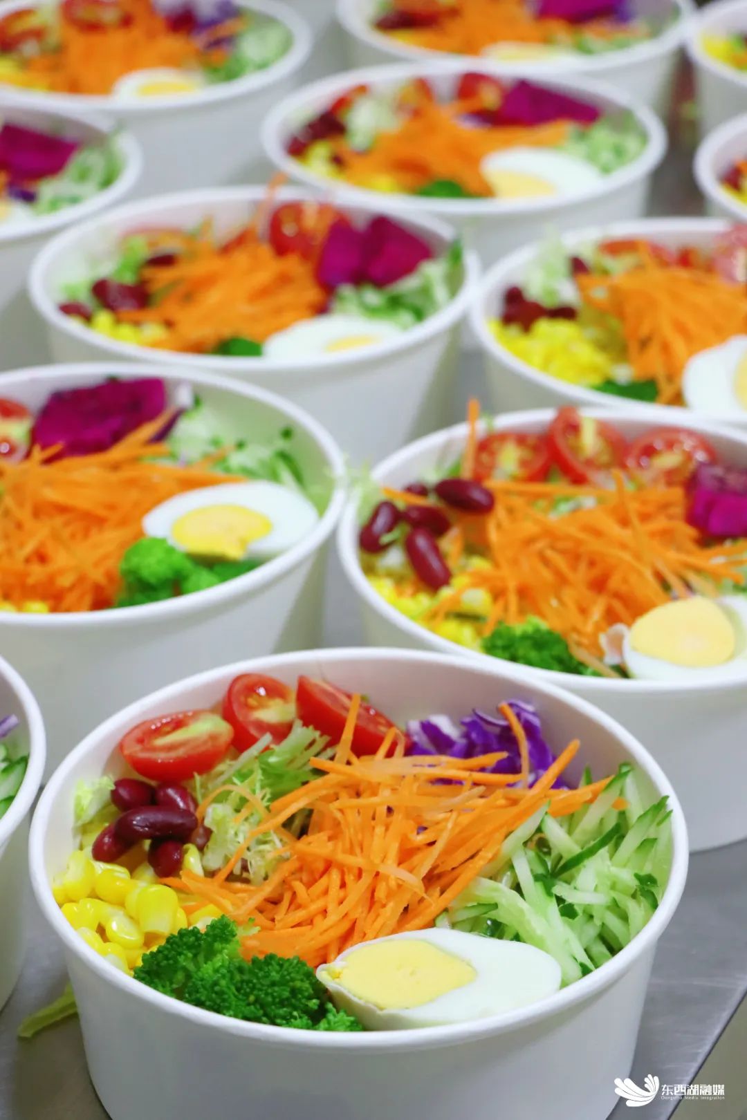 位于吴家山街文家里278号的 “凹沙拉·谷物饭·意面·减脂餐”,便是这样一处令人惊喜的轻食选择。走进店内,新鲜食材每日采购记录一目了然,菜单清晰划分四大品类:谷物拌饭、浇汁意面、线体沙拉、爽口凉面,每一份餐食都以十余种配菜打底——水煮蛋、胡萝卜、西蓝花、红豆、玉米、小番茄、黄瓜、苦菊、紫薯、火龙果、芒果……色彩与营养兼具。若偏爱肉类,还能自由搭配巴沙鱼、鸡胸肉、牛排、虾仁等高蛋白食材,一顿饭便能将肉类、谷物、蔬菜、豆类“吃个遍”。