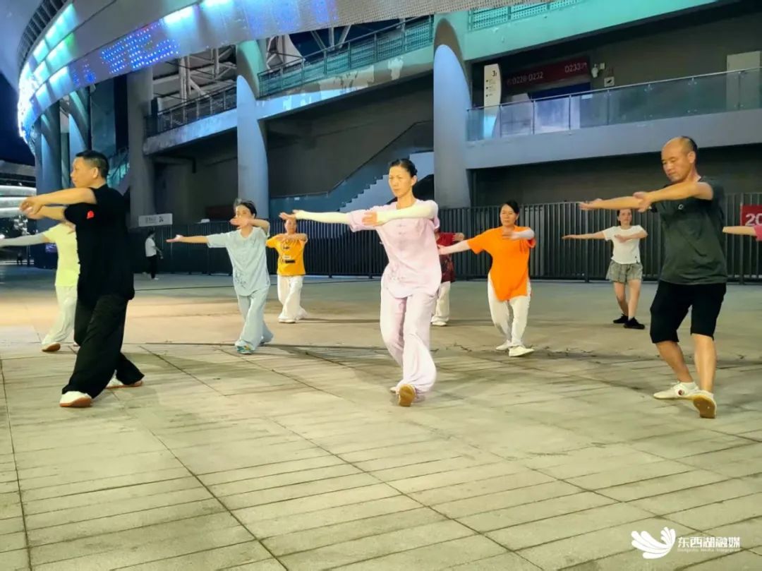 广场上,《最炫民族风》的旋律早已点燃热情。领舞的刘阿姨舞步轻盈:“以前在小区跳怕扰民,现在大广场跳得畅快又安心。”一旁的武术健身区,刚退休的张师傅缓缓收势,气定神闲:“晚上在这开阔地练太极,动作到位心也静。”