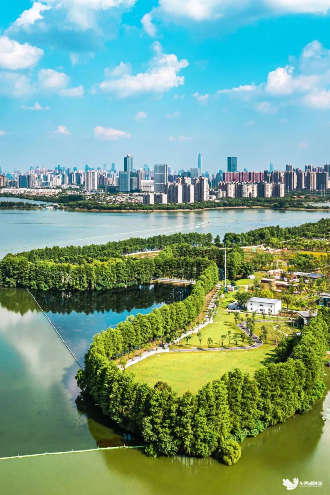 向新向绿,武汉临空港水碧天蓝。