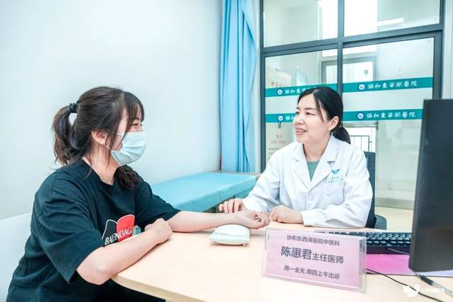 协和东西湖医院中医科主任医师陈惠君为患者把脉问诊。