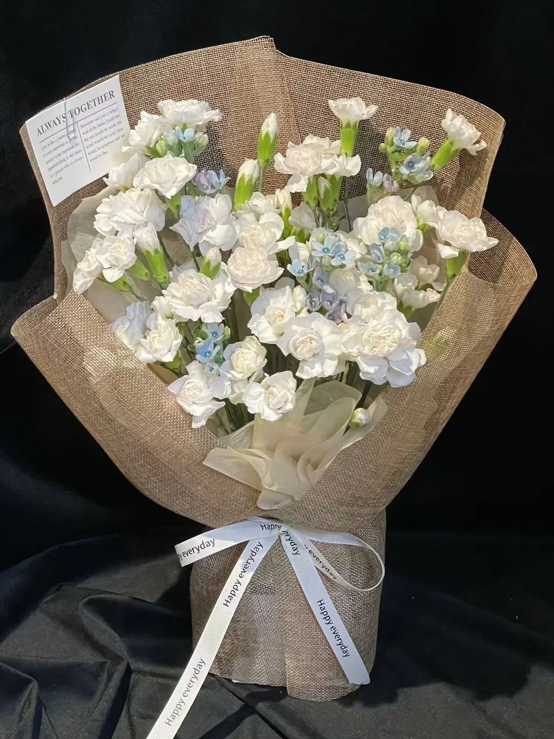 李潇会根据不同需求和场景准备花束:毕业时的感谢花束,多用向日葵和尤加利,看着清爽又有朝气;情侣间的心意花束,偏爱用玫瑰搭小苍兰;恭贺时的祝福花束,就选大朵的百合和康乃馨,饱满又热闹。她甚至会根据客人送花时穿搭的色系来搭配花束,说这样送花时的画面特别和谐。“每当客人收到花,表示十分满意,我就觉得很幸福,我用心做的花,让每一份爱意都得到了美好的表达。”
