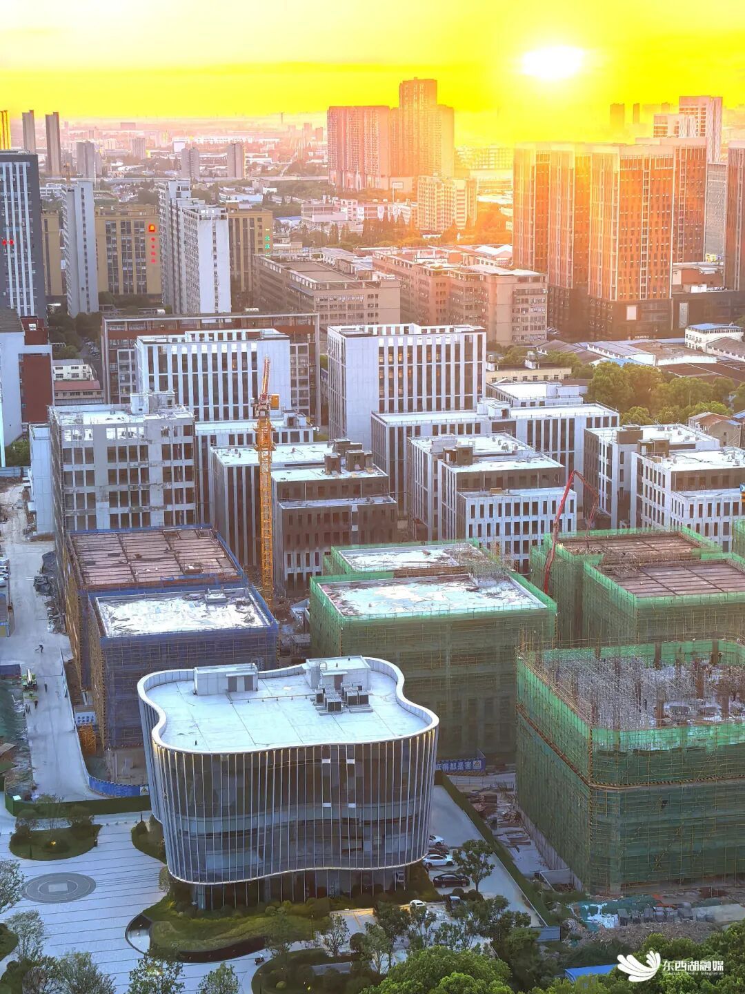 在蓝天映衬下,一座现代化产业园区轮廓初显。8月21日,东西湖融媒从长青街的理想科学城获悉,该项目第一期第一批次共7万平方米、15栋建筑将于9月底正式交付。目前园区绿化和外墙施工正抓紧收尾,多家签约企业已提前入场研讨装修方案。