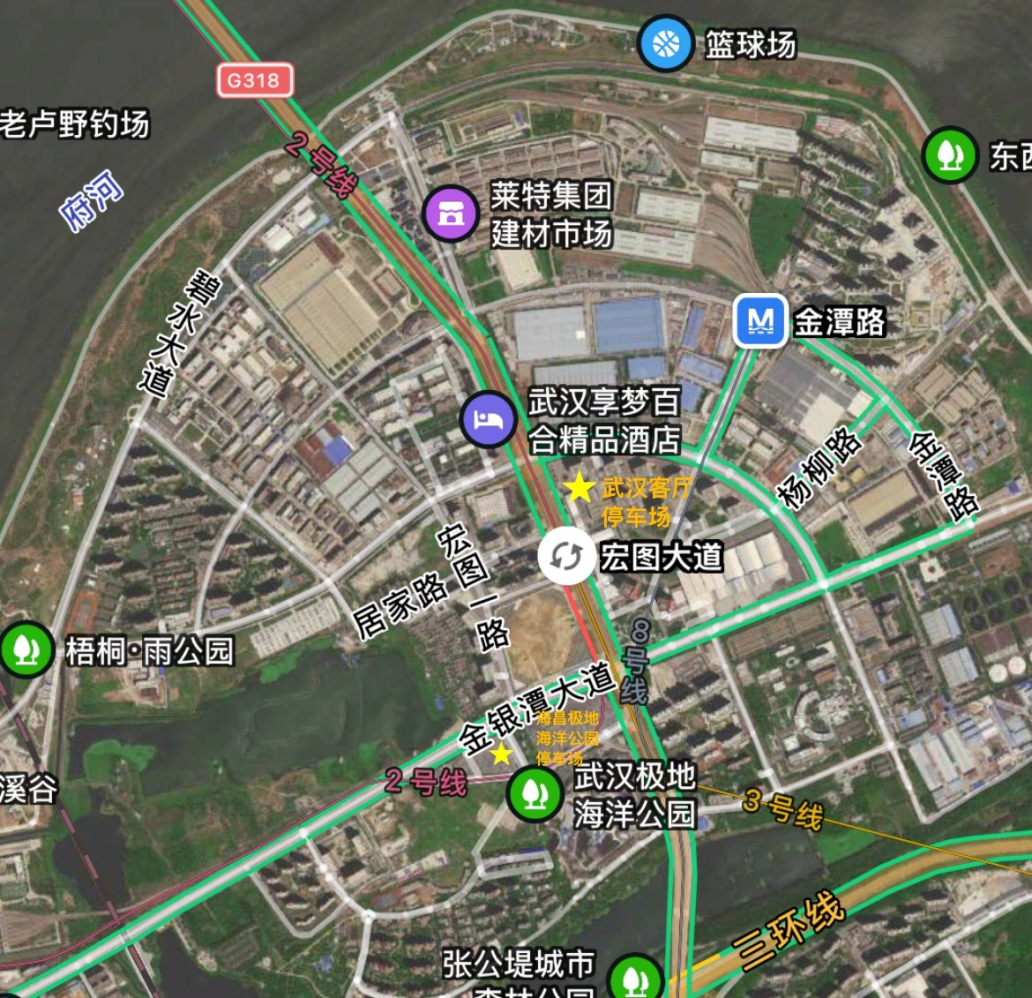 海合安武汉极地海洋度假区位于宏图路与金银潭大道西南角,设置东、北2个进出口,分别位于宏图路、金银潭大道。预计“国庆”期间,宏图路、金银潭大道区域道路交通压力较大: