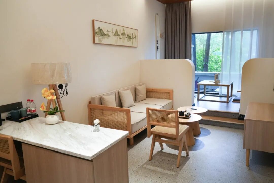 房型丰富多样,从舒适的双人间到可供多人团建、聚会的独栋别墅套房,满足了不同客人的需求。