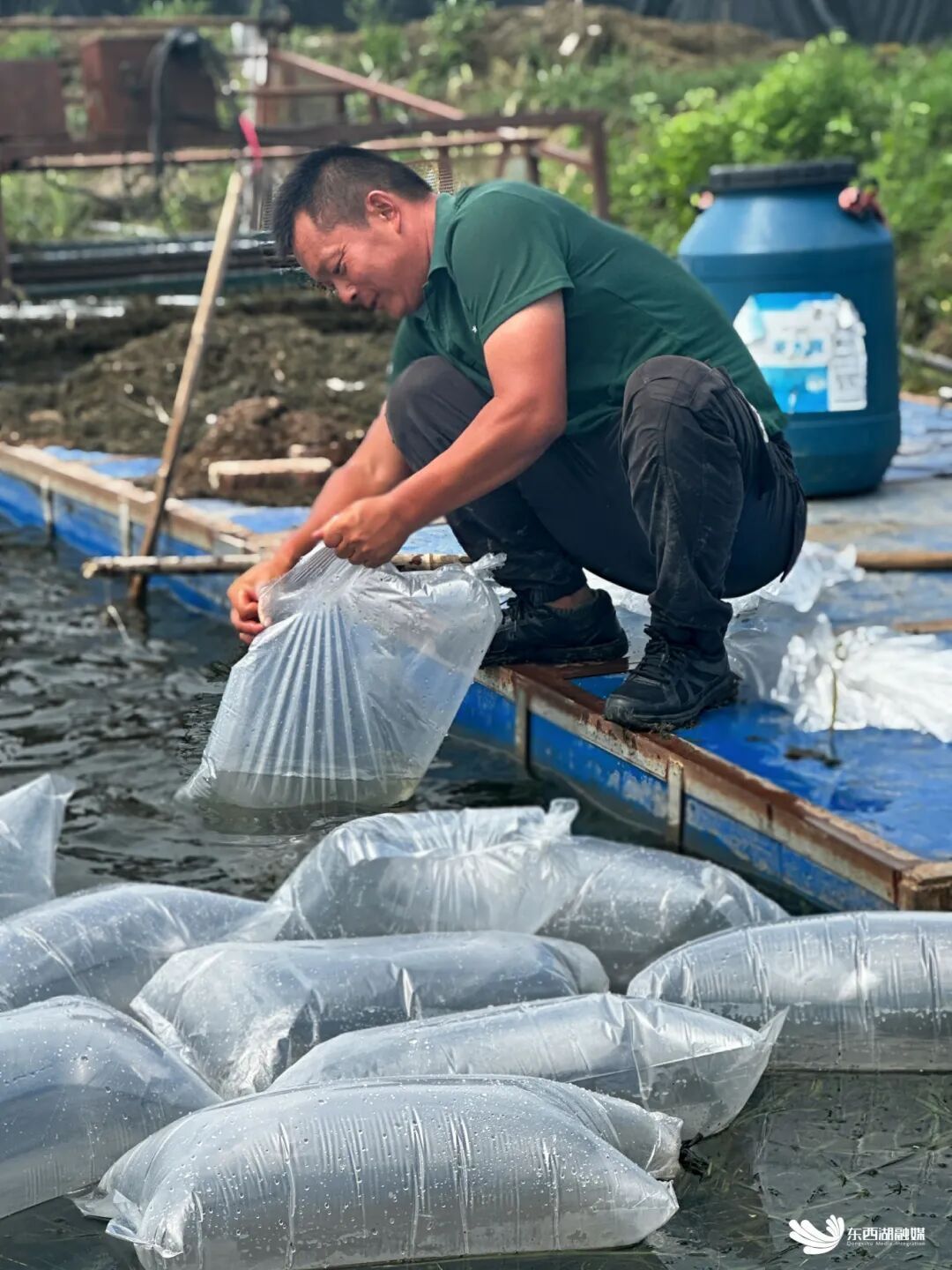 梁佳文用鱼苗清理杂质。