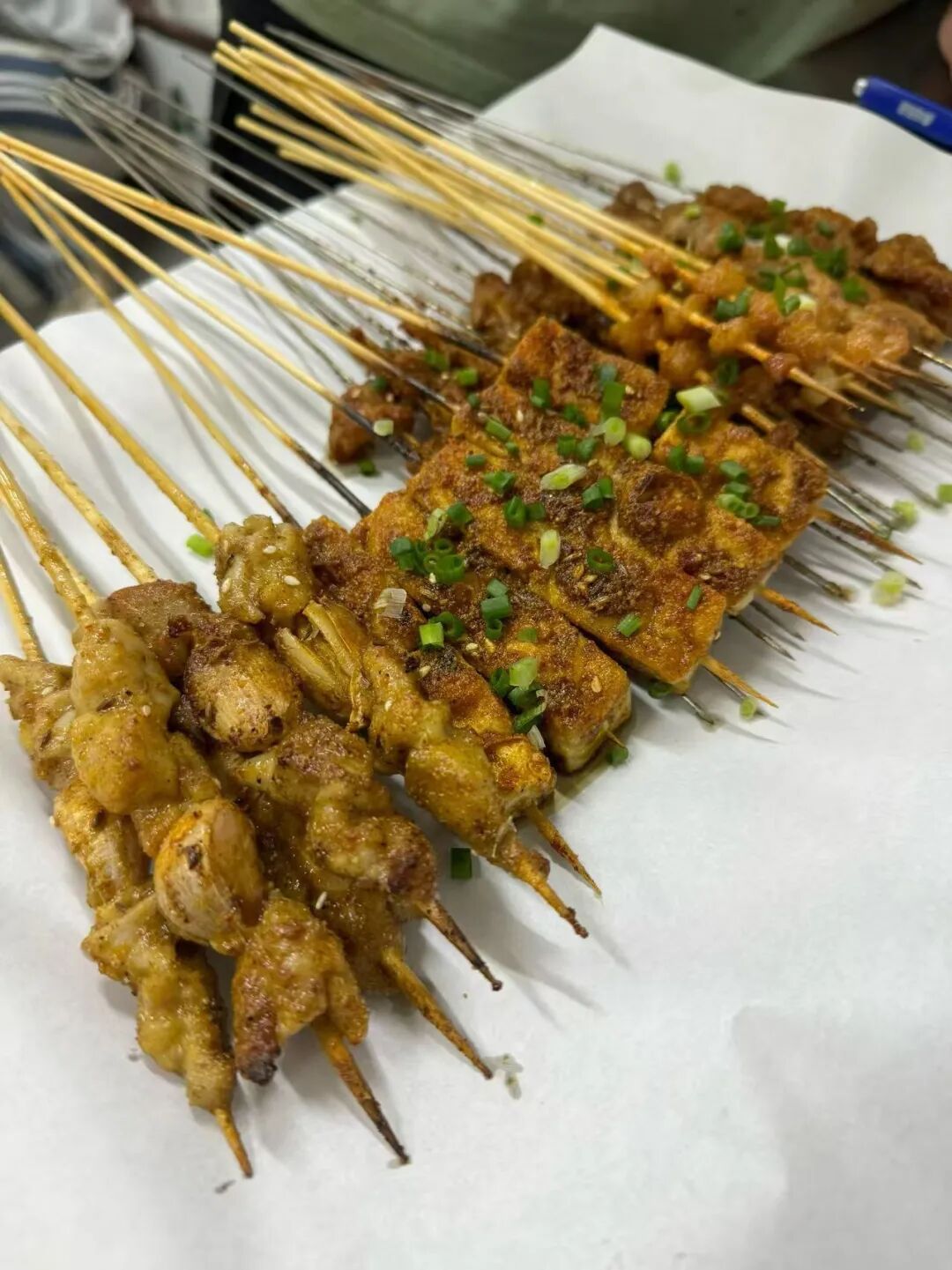 店内不大,却处处透着匠心:炭炉上火星跳跃,肉串滋滋作响,招牌肉筋的弹韧、烤脆骨的爽脆、鲜虾的甘甜、蟹柳的滑嫩,虽品种不多,却样样精工细作。张姐常说:“少而精,才是对食客的尊重。”
