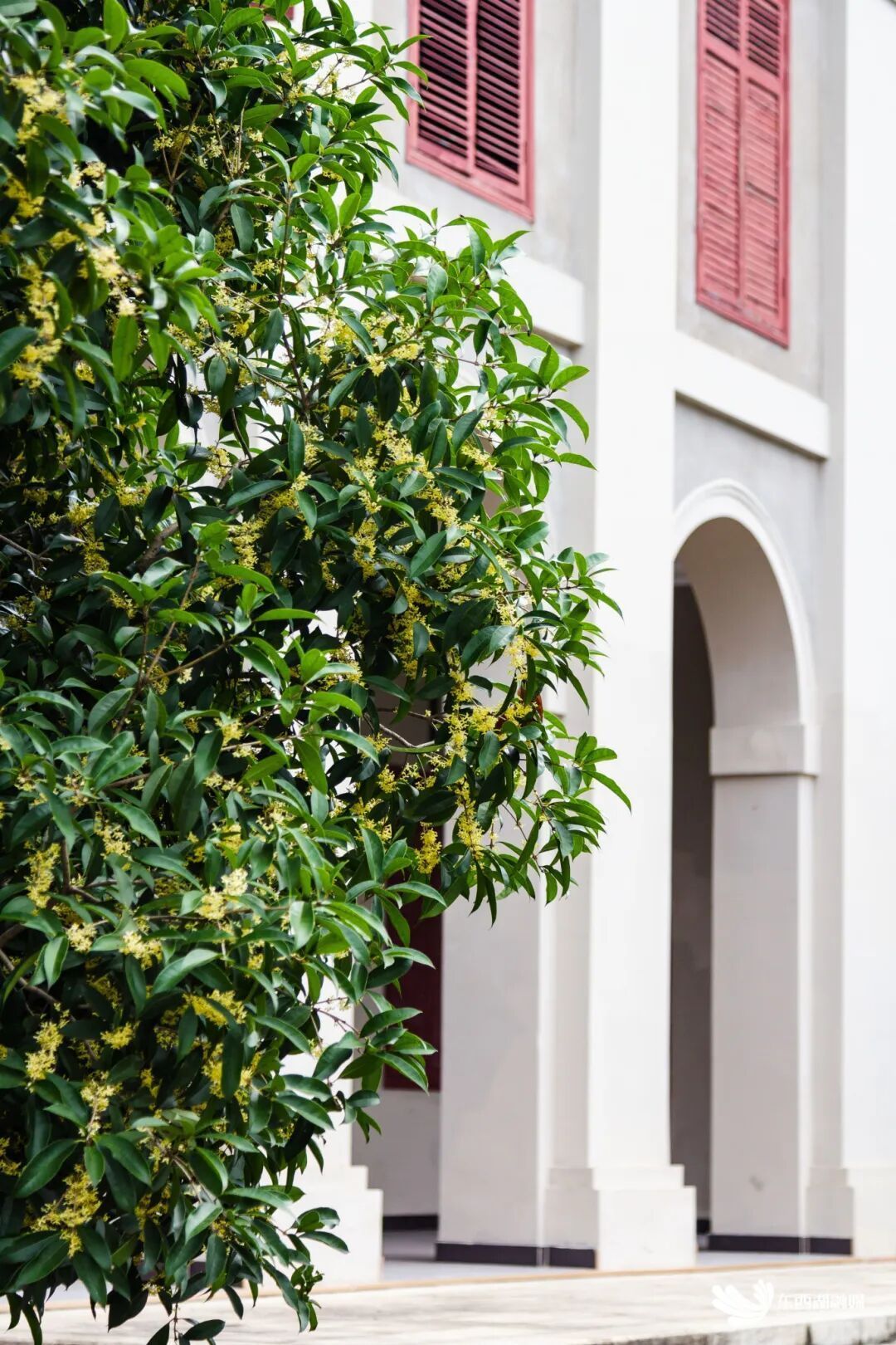 教堂前庭的老桂树也别错过,眼下正值花期,树上繁花满枝,金黄一片。秋风拂过,桂香四溢,路过的游客无不驻足深呼吸。那香味恰到好处,甜甜的,沾在衣物上,许久不散。有人举着手机拍花枝,想留存这秋日芬芳,为治愈的一日增添一抹香甜。还有人拿着杯子捡落桂,准备回去泡桂花茶,将秋天的味道带回家。