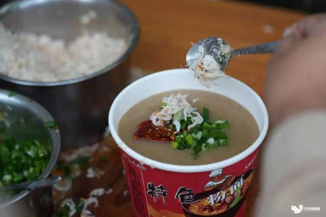 常青花园的清晨,除了有热干面的芝麻浓香和牛肉粉的酣畅淋漓,还有一味源自江河的鲜美——李记鲜鱼糊汤粉。每天凌晨三点,老板曹茂旺便开始熬制那一锅奶白色的汤底。新鲜小鲫鱼经热油煎至金黄,加入清水与秘制香料,大火滚沸、文火慢炖,直至鱼骨酥烂、鱼肉融于汤中。出锅时汤色如乳,鱼香中透着一缕胡椒的辛香。