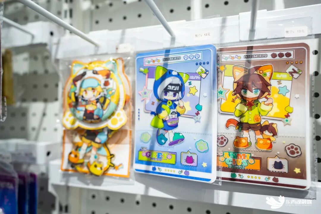 走进她如今位于吴家山中心广场的店铺,琳琅满目的二次元周边令人目不暇接。游戏类如《第五人格》《明日方舟》《恋与深空》《光与夜之恋》等热门作品的周边占据着显眼位置;动漫类则以《时光代理人》《非人哉》《罗小黑战记》等现象级番剧的衍生品为主。这些承载着高人气IP的徽章、立牌、色纸、痛包等,吸引了大量消费者驻足选购。