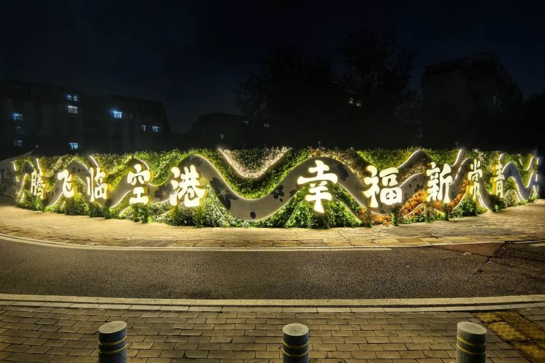 常青花园S18机场高速段下方,曾是老旧破损的转角围墙和遮挡视线的电力环网箱柜。而不久前,市民驾车经过常青花园的S18机场高速段时,发现这里出现了一条美丽的金色灯带——“腾飞临空港,幸福新常青”几个醒目的大字,点亮了居民夜晚回家的路。