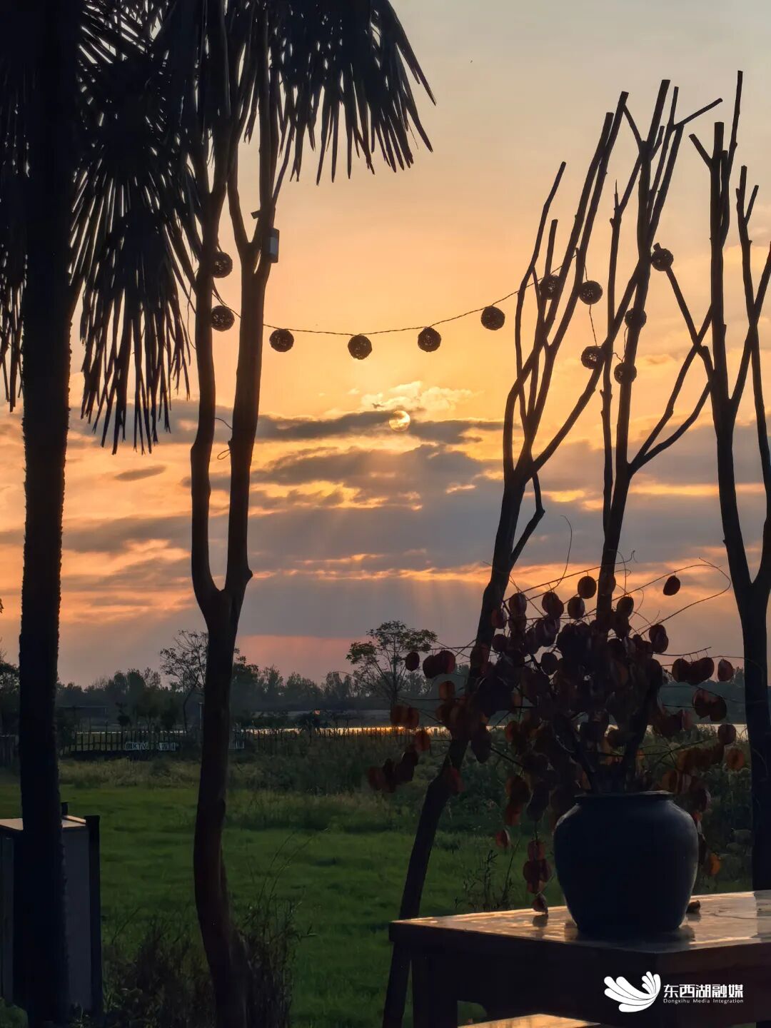 步入农庄深处,一座依托百年樟树构建的二层观景建筑跃入眼帘。巧妙的设计使建筑与古树共生,环树而建的观景平台,确保每位访客都能无障碍欣赏巨龙湖日落胜景,因此被游客亲切称为“落日收藏馆”。