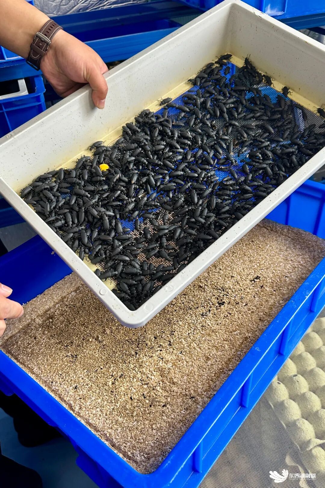 武汉的气候,也成为大黑甲虫养殖的优势。“这种昆虫适宜在25℃以上环境生长。”邹浩然表示,武汉夏季气温高且持续期长,非常适合大黑甲虫的生长,冬季通过空调控温和排气扇通风即可维持适宜环境。目前,大黑甲虫可年繁殖三代,经济效益显著。记者在养殖车间看到,六层高的立体养殖架上,每个养殖盒都处于精密的环控系统中,温度恒定在25-30℃,湿度保持在60%-70%,实现了空间高效利用。