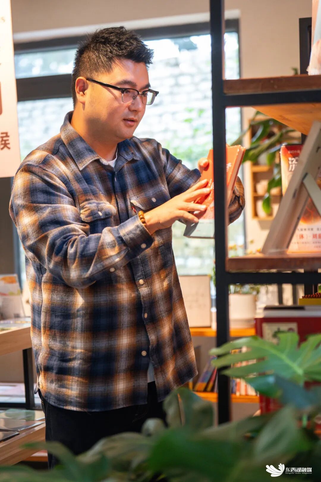 胡严飞精心挑选图书。