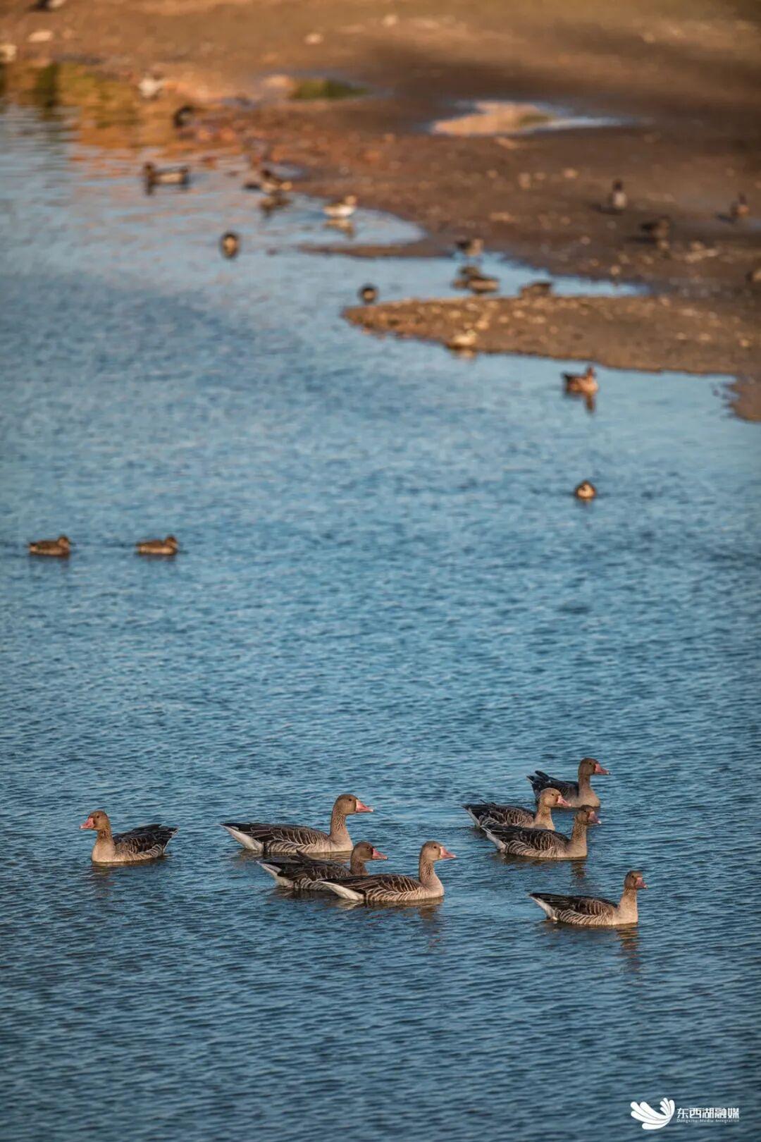 在天鹅湖越冬的候鸟。