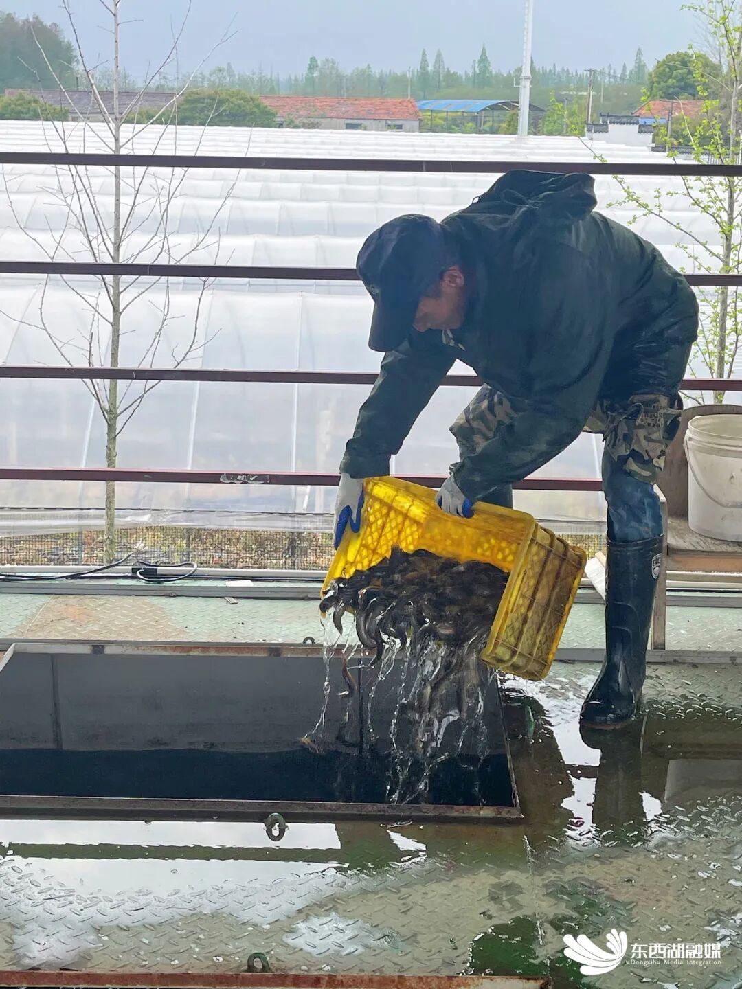 相隔不远,武汉康生源生态农业有限公司的养殖基地里,一排排改造后的集装箱格外引人注目。这些高2.5米、长6米的集装箱上下分别安装了进出水管,箱内水流潺潺,成群的鲈鱼悠然巡游。“这是‘集装箱+生态池塘’一体化循环水养殖系统,”公司负责人金敏介绍道,“每个25立方米的集装箱每半年可产出约3000斤鲈鱼,亩产量达到传统鱼塘的10倍以上。”