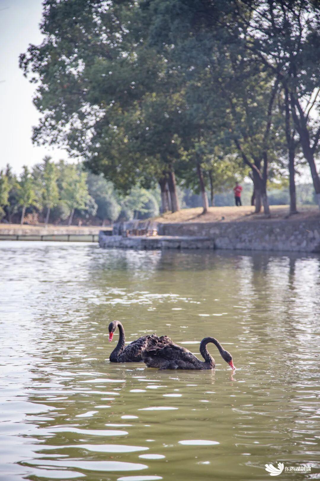 清澈的湖水中,黑天鹅、白鹭等水鸟翩跹起舞,村民们茶余饭后有了惬意的休闲去处。