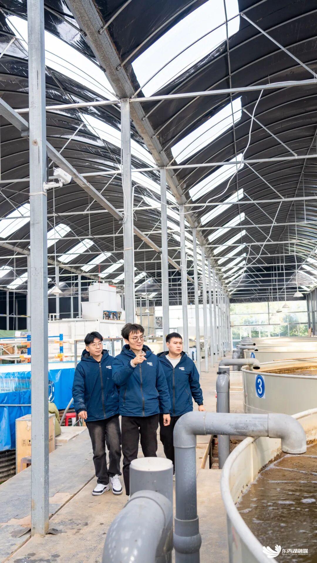 2023年初,团队入驻合作社,艰苦攻关四个月,成功将实验室里的小型隔膜电解净水设备升级为大型循环水养殖尾水处理系统,每小时可处理100吨水。