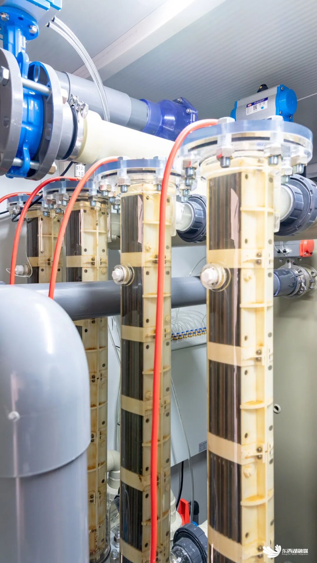 “就像用最精细的筛子过滤水一样。”李亚武向记者解释,“不仅能分离氨氮等有害物,在电解作用下还能杀灭病菌。”
