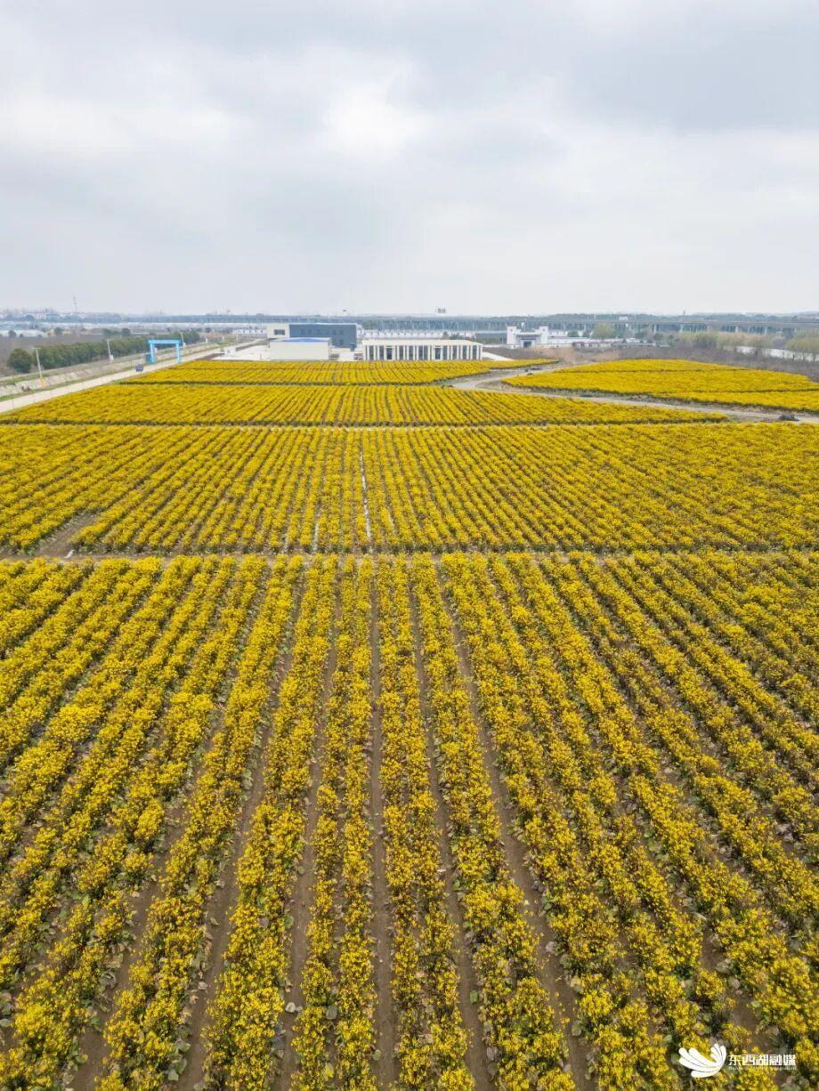 正月里,种植基地再度迎来高光时刻——洪山菜薹迎向春光蓄力绽放,形成了蔚为壮观的金色花海。