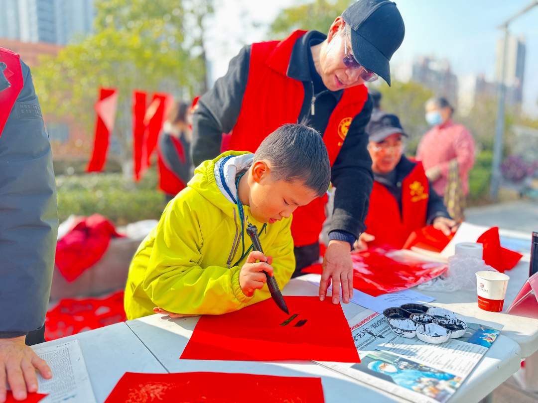 将军路街的孩子们在托管班中化身“小小摊主”,参与公益市集,售卖手作与闲置物品。现场舞龙舞狮、写“福”字等活动年味浓浓;刘家墩青少年空间还设置投壶、捶丸等传统游戏区,让青少年沉浸式感受传统文化。